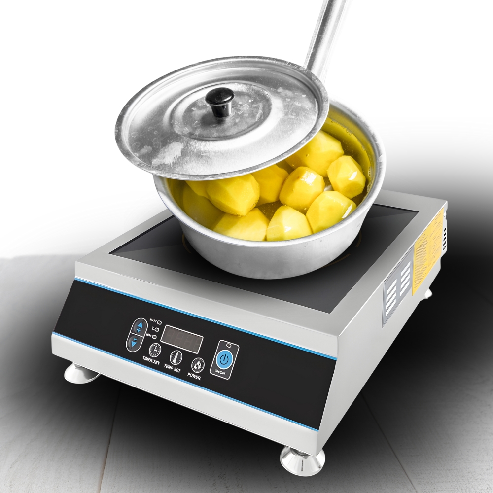 Οικονομική επαγωγική εστία με επίπεδη μαύρη επιφάνεια γυαλιού crystle πάχους 4mm. Χρονοδιακόπτης 0-120min. Εύρος θερμοκρασίας 70°C-280°C , Εύρος ισχύος 200W-3.500W. Ισχύς πλατώ-εστίας 3500W/1PH. Τροφοδοσία πλατώ-εστίας 220V/50Hz. Επιφάνεια ψησίματος cm o28.