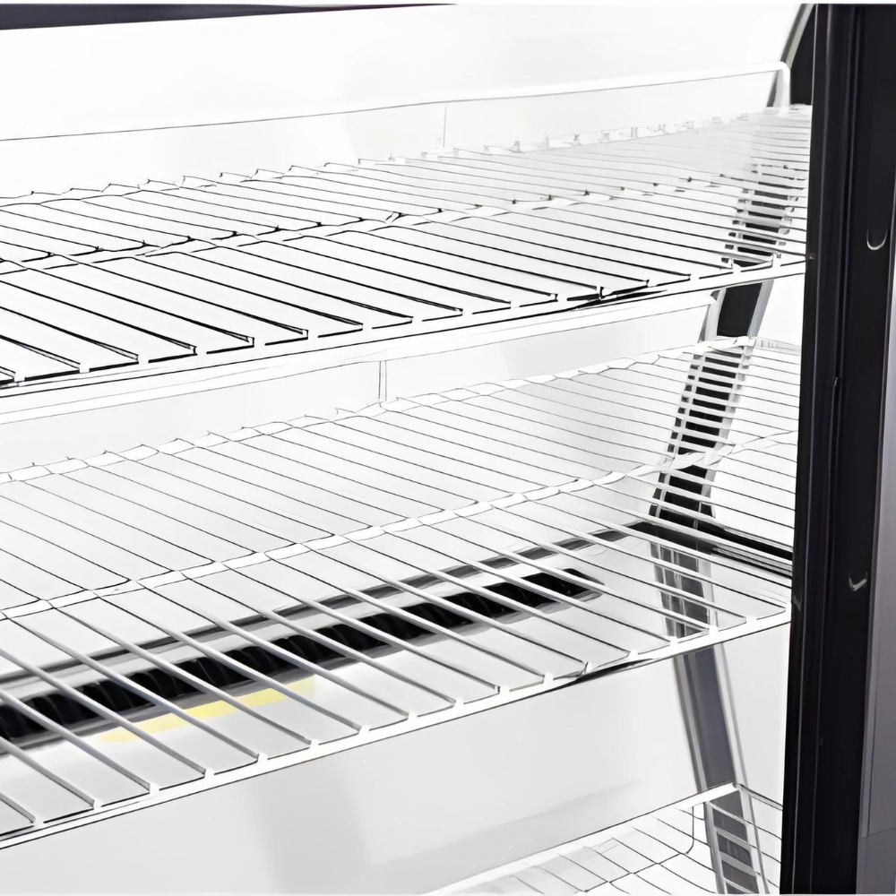 Ψυχόμενη επιτραπέζια βιτρίνα με χωρητικότητα 140Lt, με 2 ράφια ρυθμιζόμενα και φωτισμό LED. Κατασκευασμένη βάση από ανοξείδωτο ατσάλι 201, με διπλά τζάμια και 2 πόρτες συρόμενες. Σύστημα βεβιασμένης ψύξης και ηλεκτρονικός θερμοστάτης.