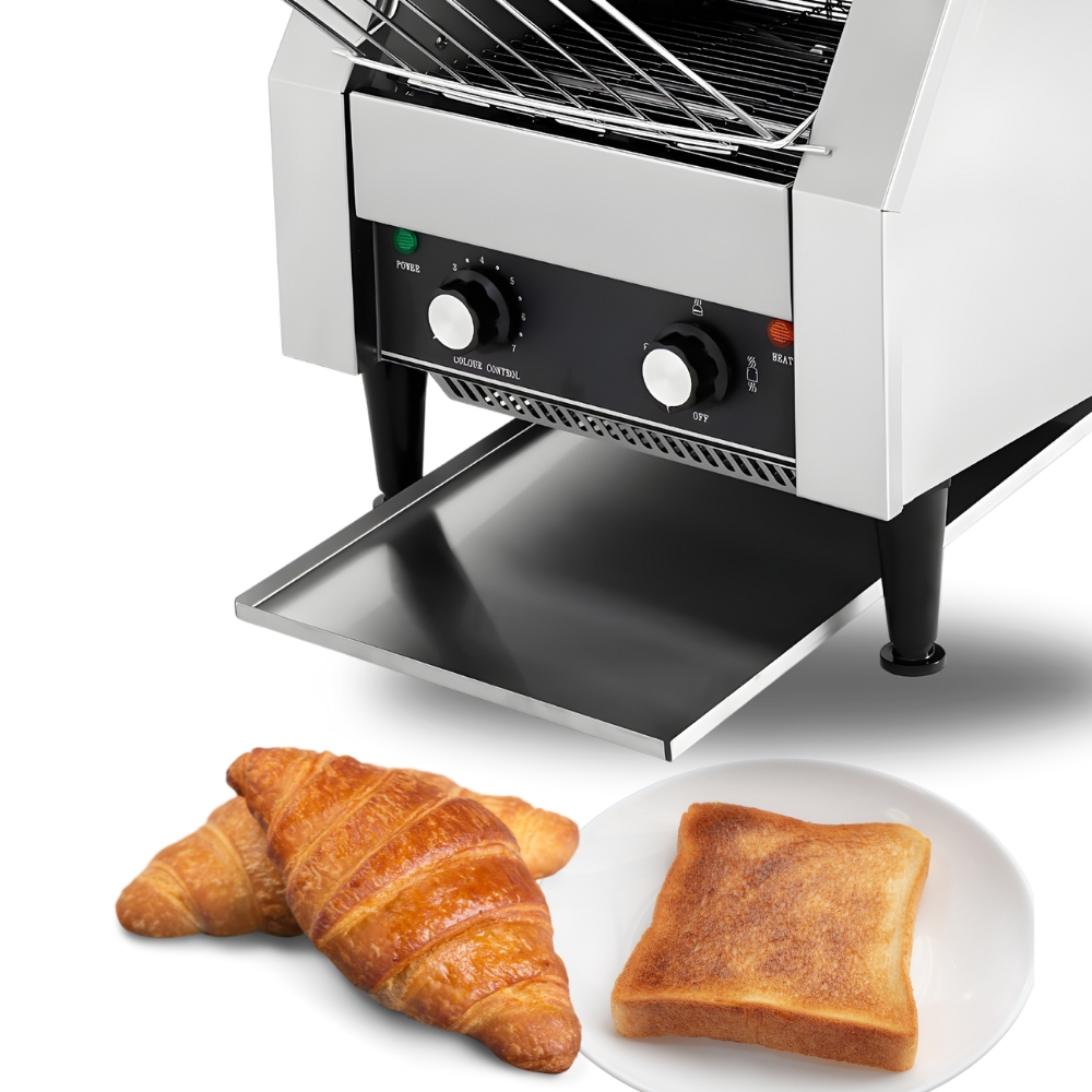 Κατασκευή από ανοξείδωτο ατσάλι με επιλογές ψησίματος διπλής όψης και ρυθμιζόμενη ταχύτητα μεταφοράς. Λειτουργία αναμονής για εξοικονόμηση ενέργειας. Iδανική για φρυγάνισμα ψωμίου σε φέτες, κουλουριών, κρουασάν και σφολιατοειδών.